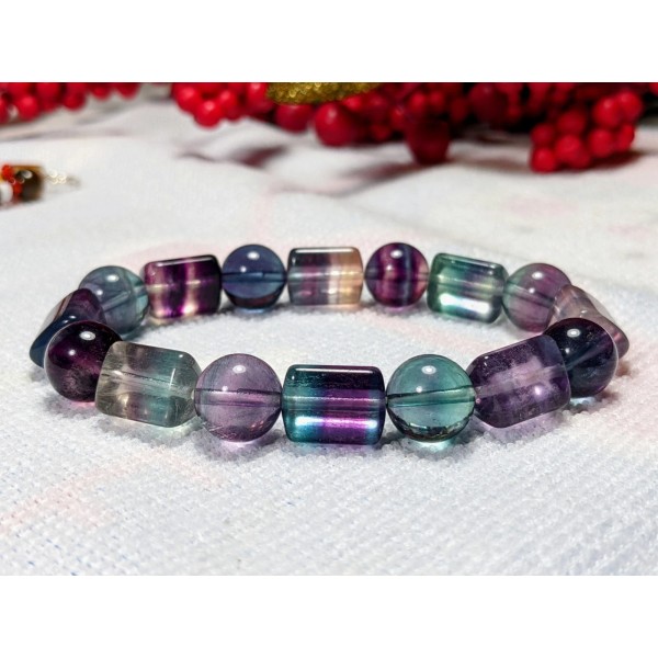 This is a Top 3A FLUORITE Sphere & Triangular Column bead bracelet on stretch. The bracelet are made with 12mm round beads and Columns.