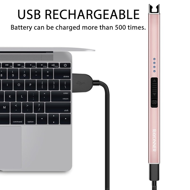 RAYONNER Lighter Electric Candle Lighters Rechargeable USB Lighter Arc Lighters for Candle Camping (1Pack, Rose Gold)