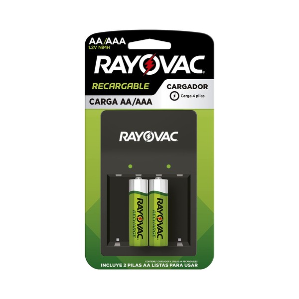 Rayovac, Cargador para Pilas Recargables AA/AAA, Negro/Verde