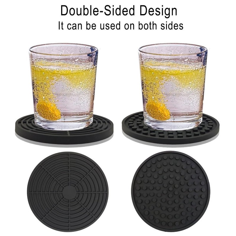 - Non-slip Design: The silicone coasters have a textured surface that provides excellent grip, preventing your cups from sliding or tipping over. They are also easy to clean and can be washed in the dishwasher