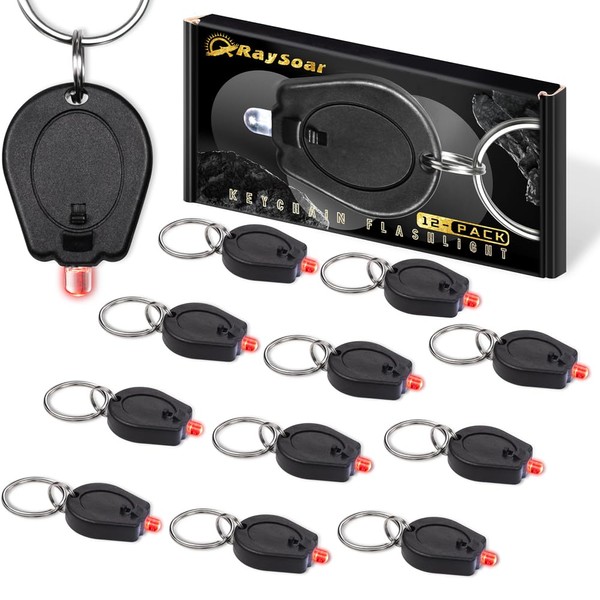 RaySoar 12 Pack Ultra Bright Red LED Keychain Flashlight, Red Keychain Flashlight for Night Observation