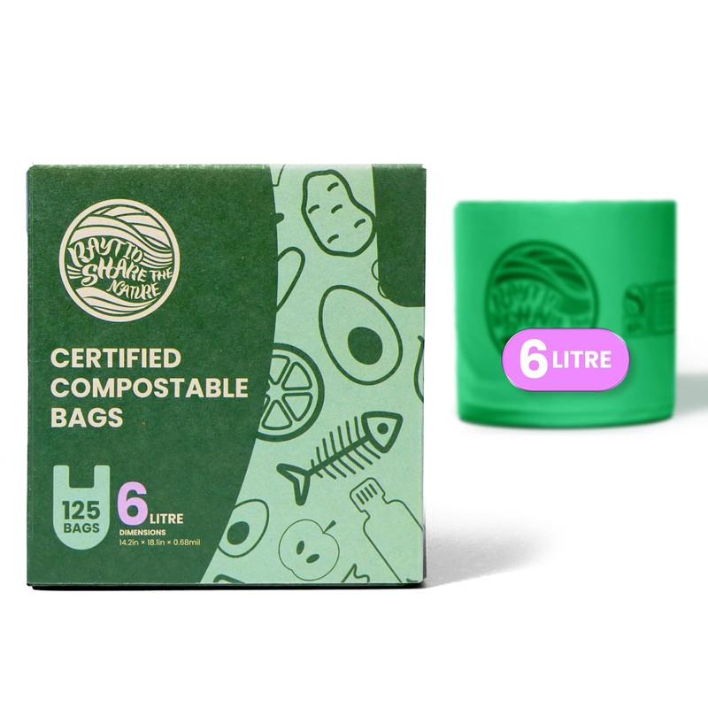 RAYTID Tie Handle Compostable Food Waste Bags 6L 125 Kitchen Compostable Caddy Liners with Handle