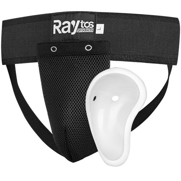 Raytos Foul Cup Boxing Martial Arts Gold Guard PVC Cup Removable (M, Black)