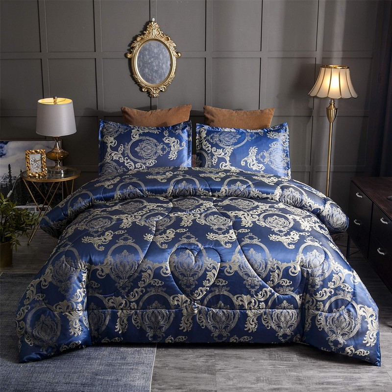 Raytrue-X King Comforter Set Silk Blanket All Season Bed Comforter King Set Royal Blue Jacquard Quilt Soft Microfiber Bedding Sets Matching 2 Pillow Shams(King, 104x90 inches)