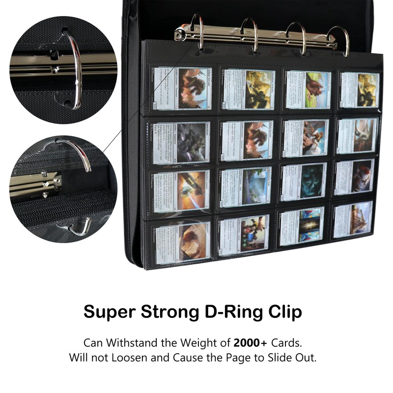 - Metal D-Ring: Reinforced 3" metal D-ring for easy loading of pages, side loading design to prevent cards from easily falling out, along with a zippered closure for extra protection.