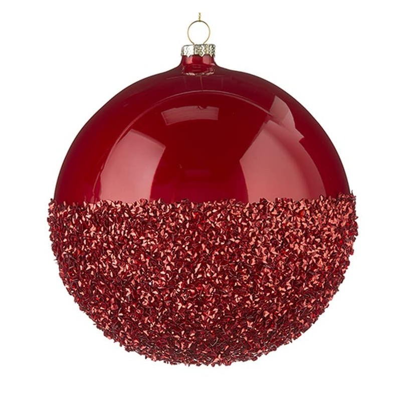 Raz Imports 2022 Tartan Tidings 6" Half Glittered Red Ball Ornament