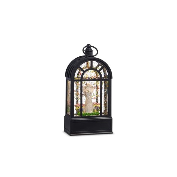 - Springtime Serenity: Elevate your decor with our enchanting 10.5" Angel With Birds Lighted Water Arched Greenhouse, a captivating Black water lantern that encapsulates the beauty of spring.