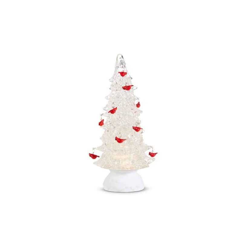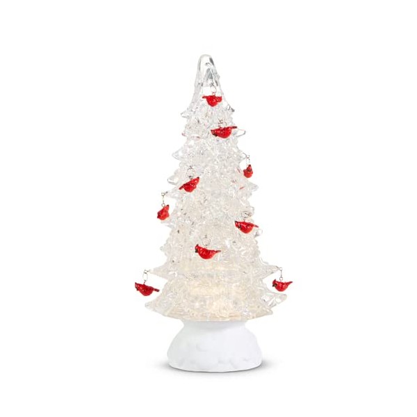 RAZ Imports Lighted Tree with Cardinal Ornaments and Swirling Glitter, 12 inches