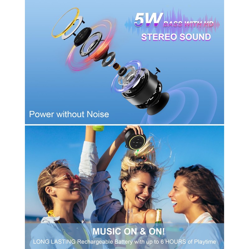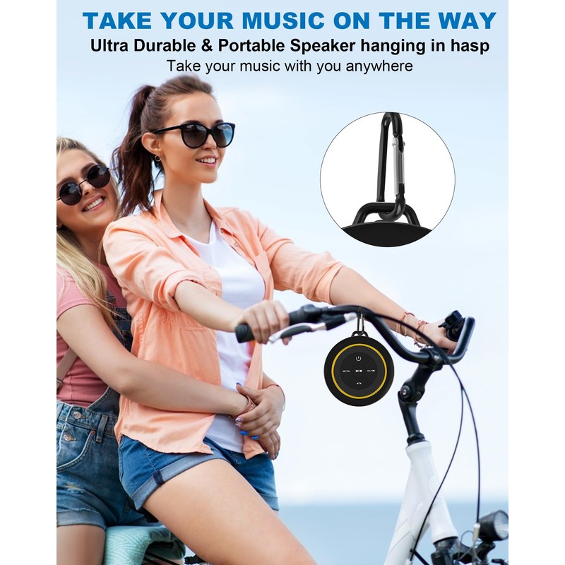 - [IP67 Waterproof Shower Speaker - Floating Design] Enjoy music without fearing water drops! Our shower speaker has an IP67 waterproof certification, capable of being submerged in one meter of water for up to 30 minutes, and it can float on the surface after diving. Whether in the shower, at a pool party, or relaxing on the beach while playing in the water, our waterproof shower Bluetooth speaker allows you to fully enjoy your favorite music without letting water stains hinder your enjoyment