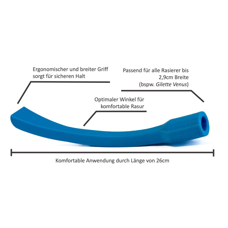 Shaving can quickly become a challenge - especially during pregnancy, after surgery or physical limitations. Our innovative razor extension with 26 cm extra reach has been designed exactly for these situations.