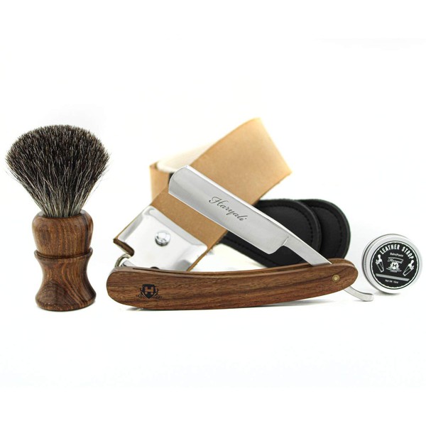Razor Set of 4 with Leather Strop and Abrasive Paste