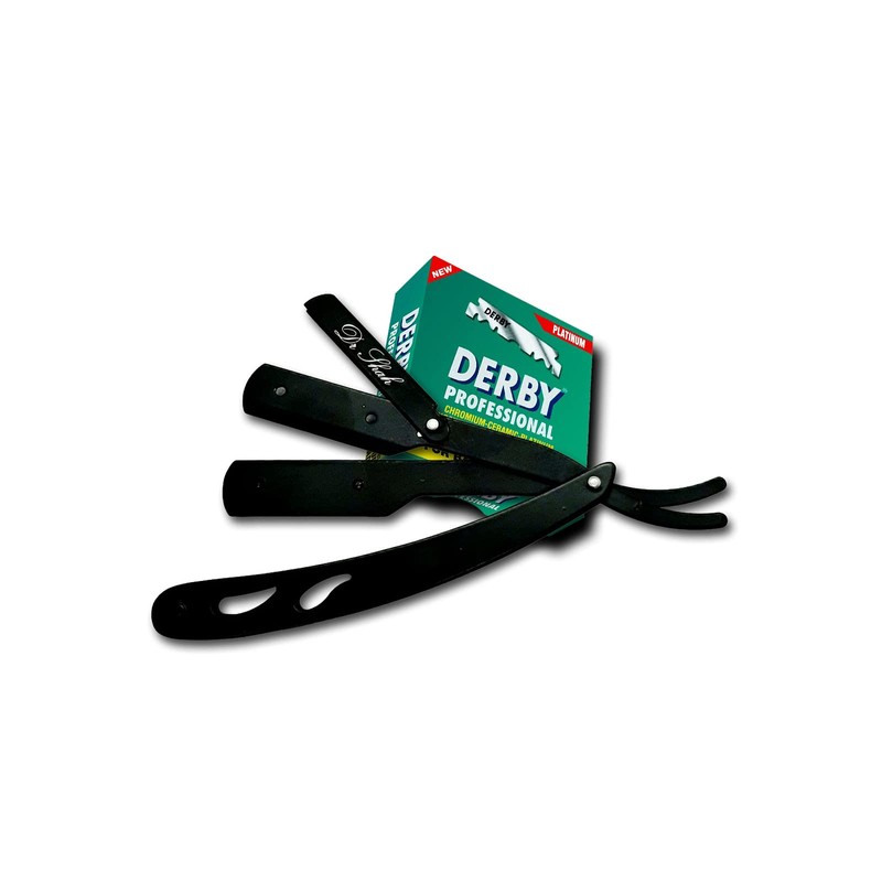 - 1.The Classic blade head made of rust free steel, has been specially designed for the extremely close knife like shave. The Razor set contains: 1) 100 Derby Blades, 2) Razor made of wood, 3) Leather pouch for optimal storage.