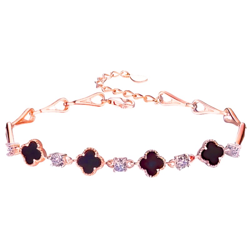 - ELEGANT DESIGN: 18k rose gold plated bracelet featuring black clover charms alternating with brilliant AAA cubic zirconia stones for a luxurious look