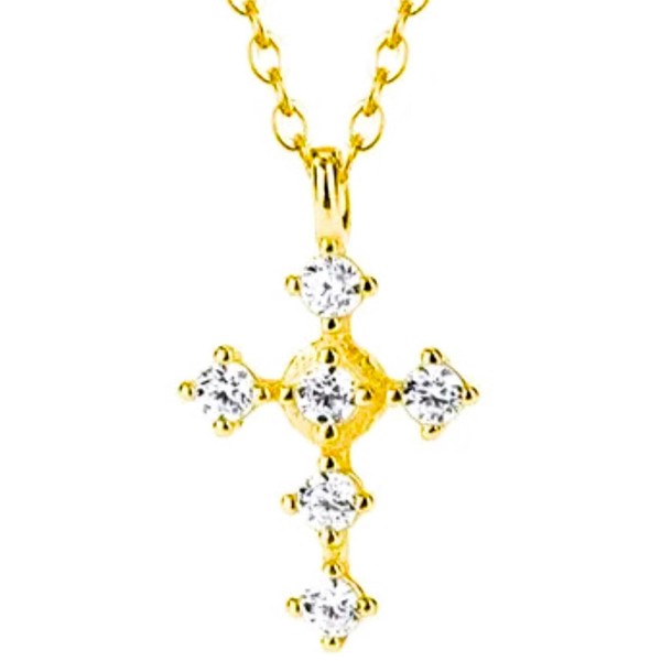 Razzberry Sterling Silver Zirconia Cross Pendant Necklace for Women, 925 Silver (Gold)
