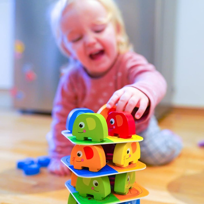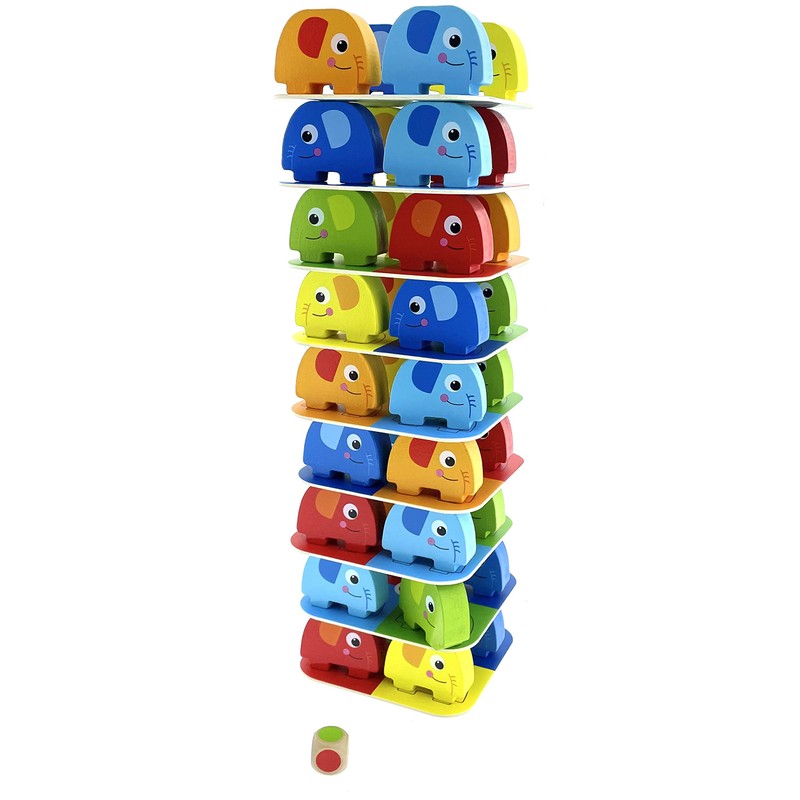 - Fun and excitement: with the colourful elephant tower game for children between 3 and 9 years, joy and fun with the family is guaranteed. The wooden building blocks are made of natural wood and non-toxic and water-based paints.