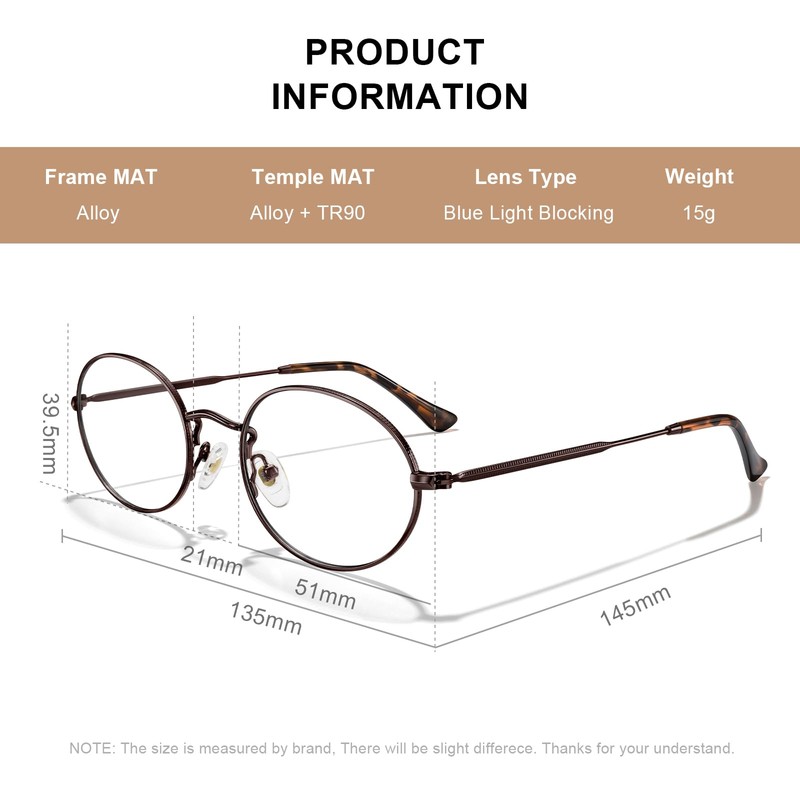 - 【PRODUCT SIZE】- Lens Width: 51mm(2.01inches) | Lens Height: 39.5mm(1.56inches) | Nose Bridge: 21mm(0.82inches) | Temple Length: 145mm(5.71inches).