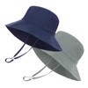 Rbenxia 2 Packs Baby Bucket Hat, UPF 50+ Sun Protection Toddler Sun Hat for Boys Girls Summer Hats for Beach Outside (CA/US, Alpha, Medium, Navy Blue+Grey)