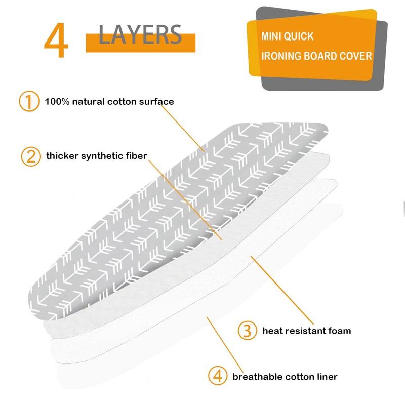 - Acolchado grueso de algodón puro de 4 capas: esta funda de planchado de mesa es extremadamente reflectante al calor y resistente a las manchas para un planchado rápido. Mantel de hierro que ayuda a las manchas, capa de algodón puro, acolchado de espuma más gruesa y forro de algodón transpirable. La cubierta de la tabla de planchar extra duradera resistente al calor y profesional capa de fieltro antideslizante para una experiencia de planchado única.