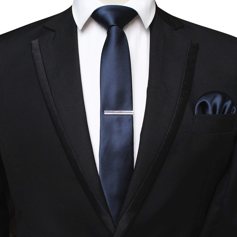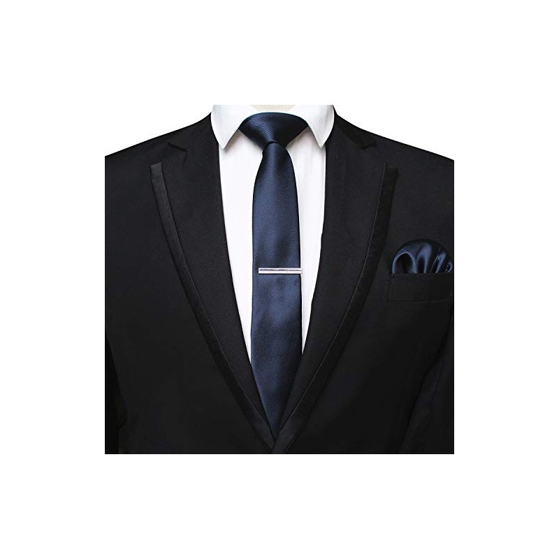 RBOCOTT 2.4" Navy Blue Skinny Tie and Pocket Square with Tie Clip Sets for Men(6cm)