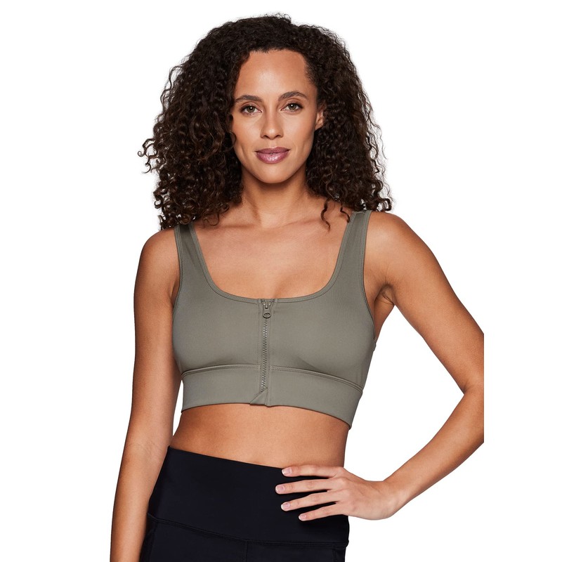 RBX Women's Sports Bra Low Impact Yoga Gym Zip Front Sports Bra Zip Smoke Sage L