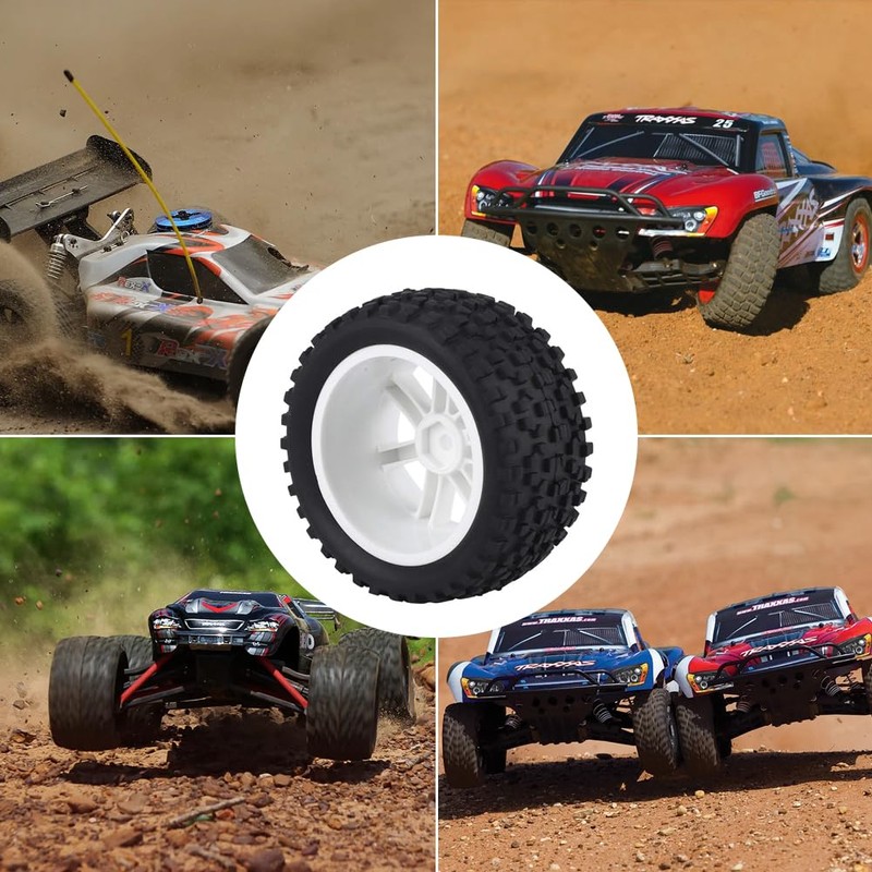 RC Car Rubber Tire, 4pcs RC Truck Rubber Tire nylon Wheel Accessory Parts for 1/10 ZD Racing Buggy Crawler Car(White)