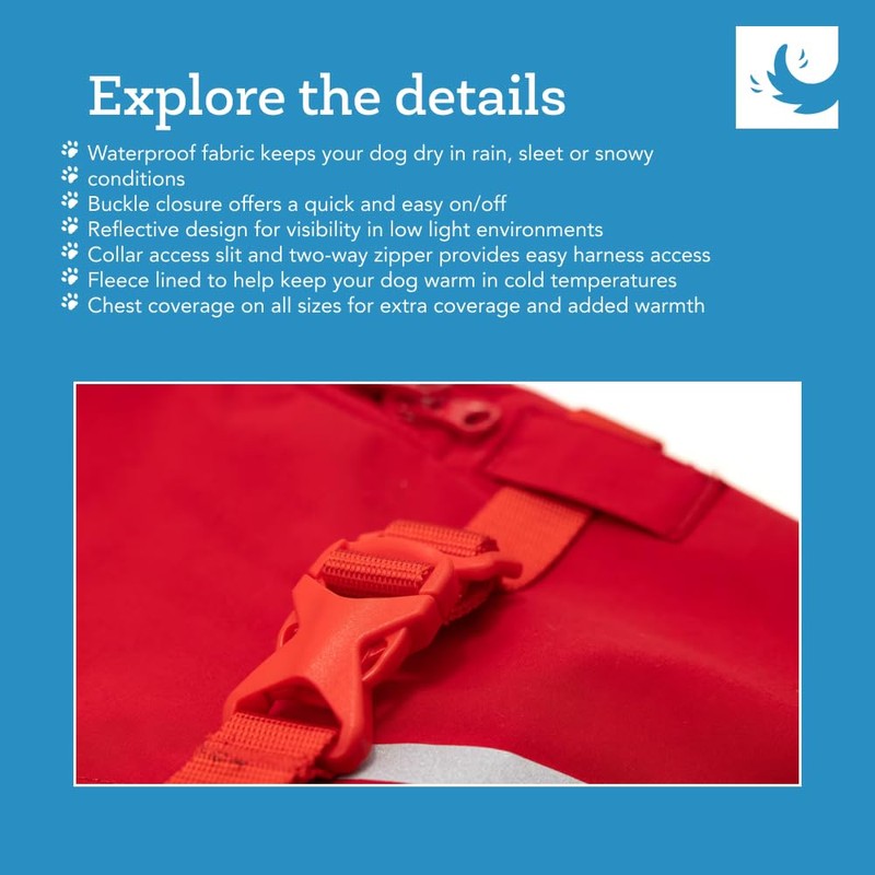 - WATERPROOF. Crafted with a waterproof exterior, this coat keeps your dog dry in rainy or snowy conditions. The material prevents water from penetrating the coat, ensuring that your pet remains dry and comfortable regardless of the weather.