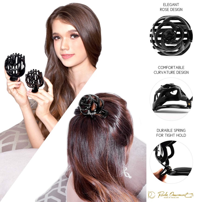 RC ROCHE ORNAMENT 6 Pcs Womens Stylish Rose Dome Comb Clamp Shell Plastic No Slip Strong Secure Grip Side Slide Bun Maker Beauty Accessory Hair Clip, Large Black