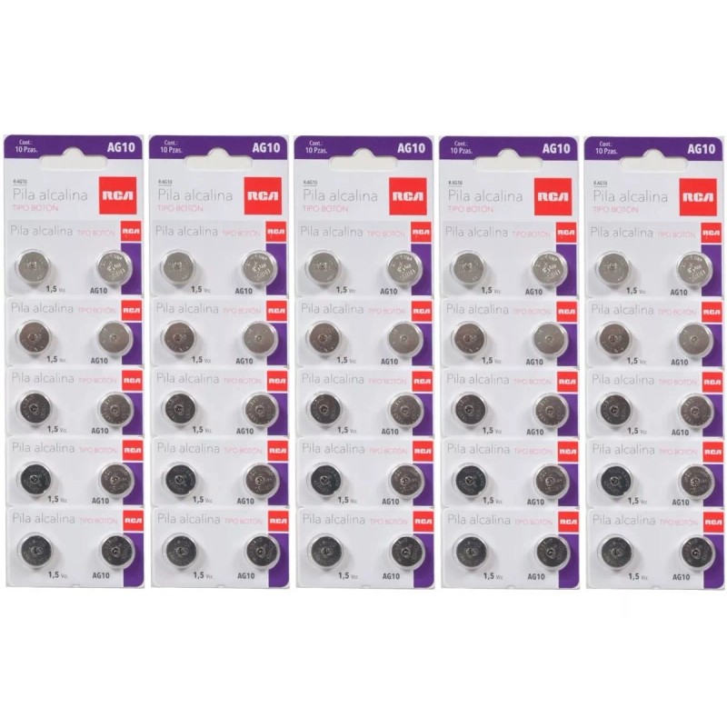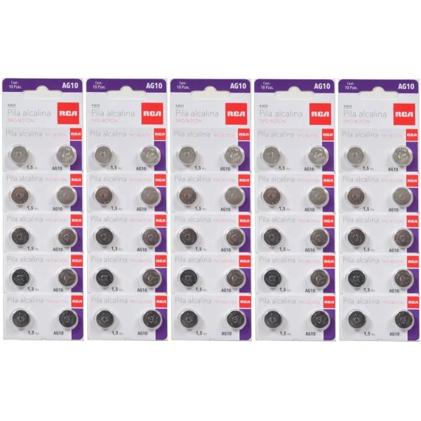 RCA 50 Piezas Ag10 Alcalinas 1.5v Lr1130 Lr54 Gp89a 389 Sr1130wr