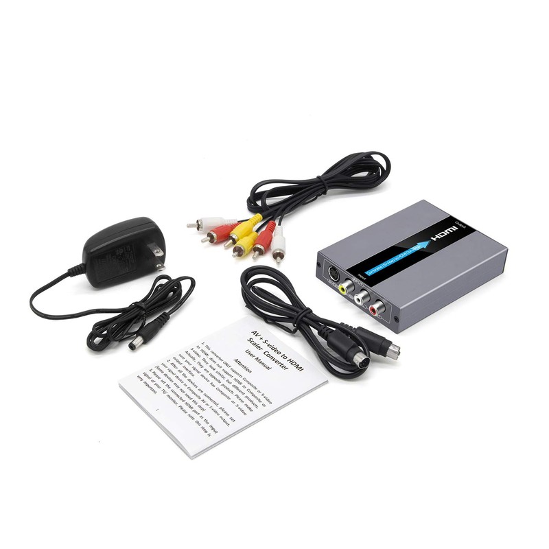 - RCA + S-video to HDMI converter, converts RCA Composite CVBS AV or S-video signal to HDMI signal. 480i(NTSC) or 576i(PAL) standard definition signal input, upscale to 720P/ 1080P full HD high definition output.