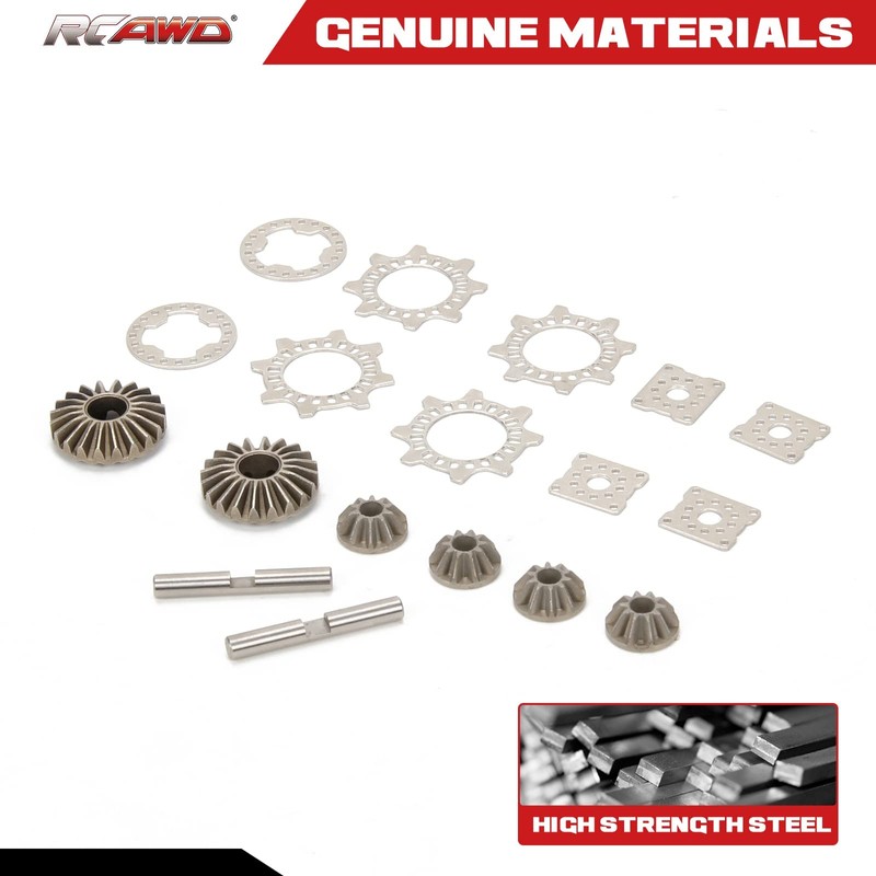 - 🔥【Spec】:The all-inclusive kit contains 4pcs 10T Satellite Gears; 2pcs 20T Planetary Gears; 2pcs Metal Cross Shafts; 2pcs Limited Diff Plate A; 4pcs Limited Diff Plate B; 4pcs Limited Diff Plate C.To be used with 29mm diff case differentials.