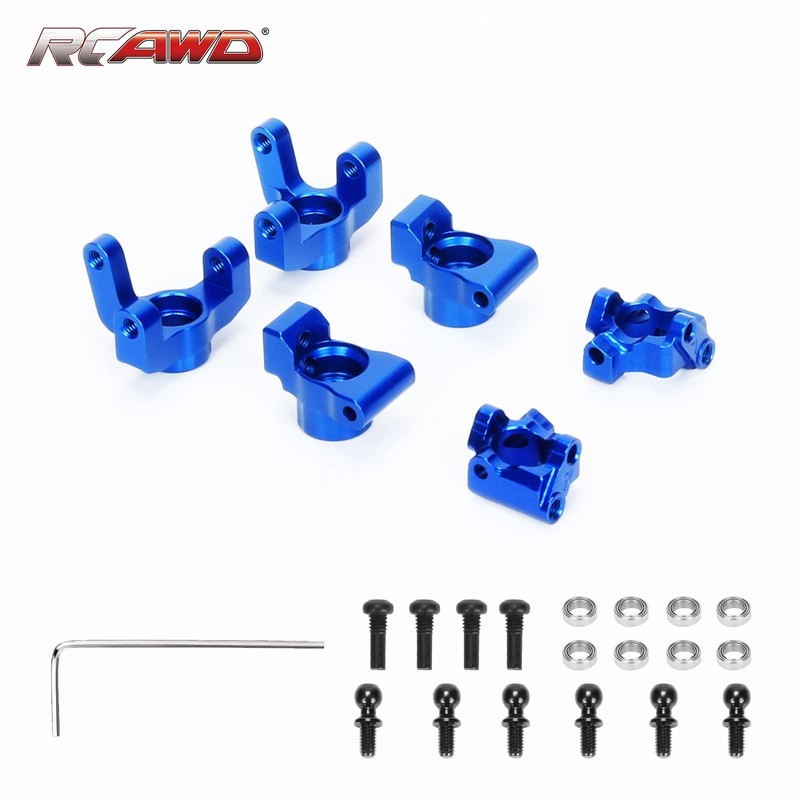 RCAWD for Losi Mini-T 2.0 1/18, Mini-B 1/16 Upgrades, Front Spindle Steering Hub Carrier& Caster Block, Front Camber Block C Hub& Rear Hub Carrier Parts for #LOS214006, #LOS311005, #LOS214005 Blue