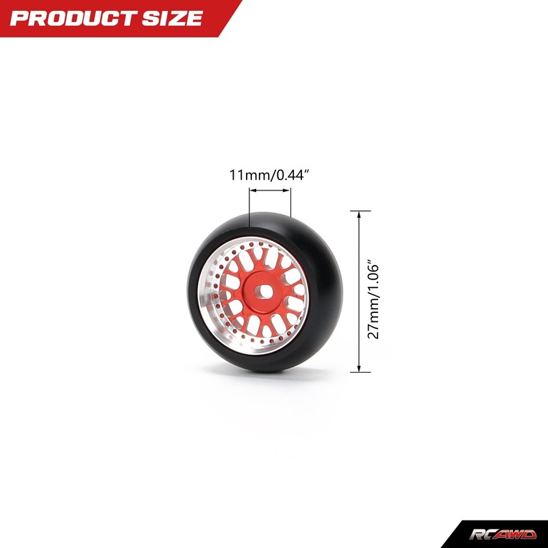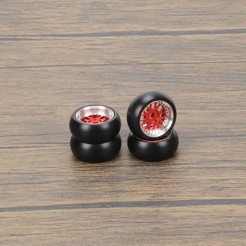 RCAWD RC Wheel Rims Tires for 1/28 Wltoys Kyosho Mini-Z, Mini-Q, Mini-D, K969 K989 P929 Drift Rally Upgrades 4pcs/set(Red)