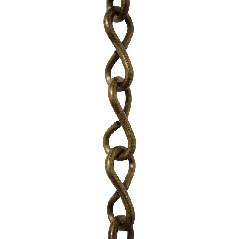 **RCH Hardware CH-S50-16-AB-3 Steel Basket Chain, Antique Brass (3 Feet):** Gauge: 16 | Link Size (in): L:0.59; W:0.31; D:0.06 Max Weight: 12 lbs | Weight per Foot: 0.04 lbs Features: Unwelded, Single Jack Chain Material: Steel, Antique Brass Finish Chain is supplied in a continuous length (up to 164 feet) Experience the superior craftsmanship, durability, and beauty of best-in-class RCH Hardware decorative chains. Whether you're upgrading new fixtures or revamping existing ones, unveil your home decor project with a strong steel hanging chain. We choose solid steel for maximum strength and durability. Available in a variety of modern, and timeless classic designs, these chains are stylish and will make your project stand out from the crowd. Hang these in your kitchen, dining room, or living room; Pair these with your chandelier, light fixture, planter, or something more creative. This item is available in Antique Brass, Antique Copper, Black, Copper, Polished Brass, Polished Chrome, Polished Nickel, White.