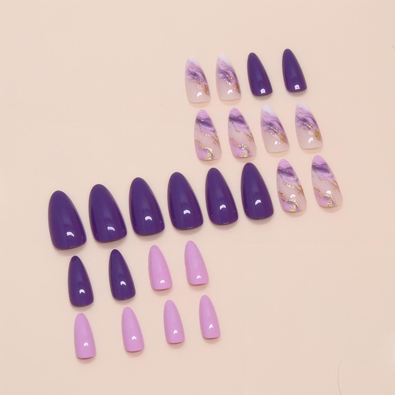 Rchovsam Marble Press on Nails Medium Almond Nails Press Ons Purple Marble Designs False Nails Full Cover Glossy Artificial Acrylic Fake Nails Gift for Women 24pcs