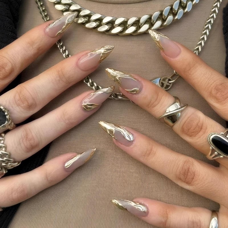 Rchovsam Medium Press on Nails Amond Nails Press Ons Medium Almond Press Ons Full Cover Artificial Nails 24pcs - 3d Gold Edge