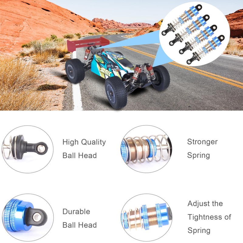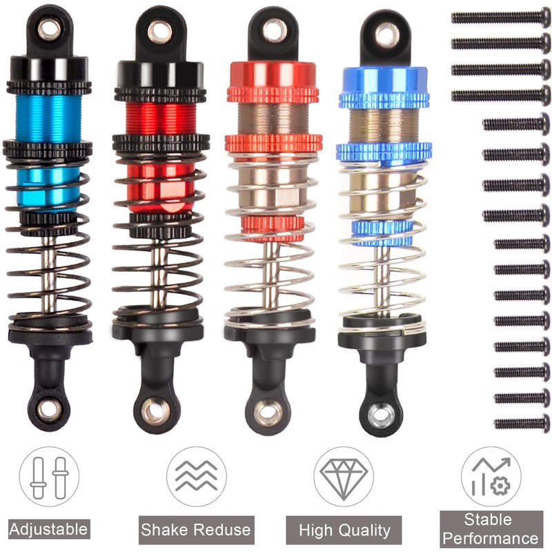 • Full 4-Shock Coverage:4 x 72mm universal shocks fit most 1/12-1/16 scale models, upgrade front & rear suspension in one kit. Measure your original shock eye-to-eye length (70-73mm recommended for 72mm shocks).