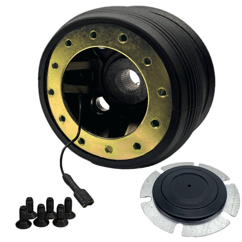 - Horn button included as well as wires and screws. High Qaulity Materials, Suitable with every steering wheel, Easy Installation, Instructions on the box.