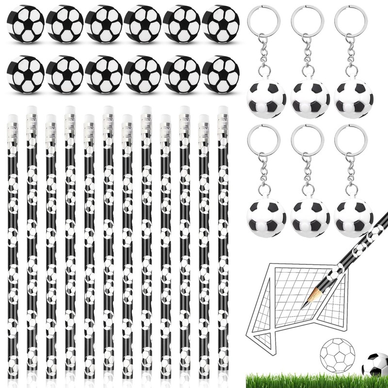 - Football Party Bags Fillers: The football party bags fillers contains 12 pieces of football pencils HB, 12 pieces of football erasers and 12 pieces of football keychains. Football party bag fillers are perfect for hosting a children's birthday party with a football theme to inspire children and awaken their enthusiasm for football