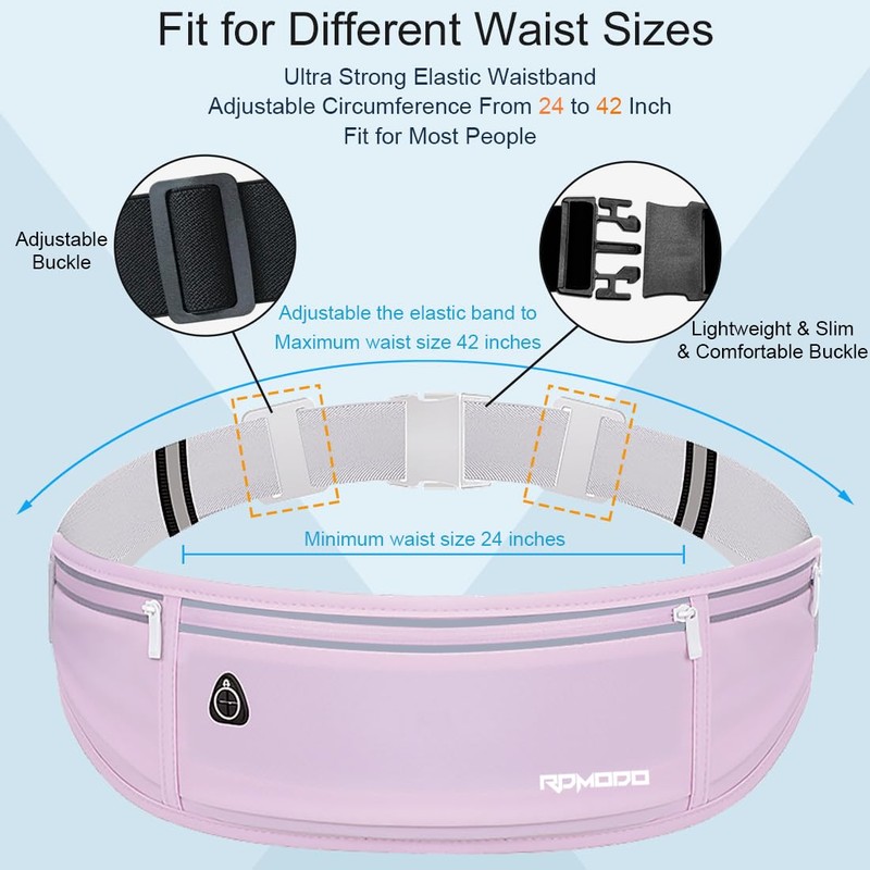 - 【Adjustable Ultra Elastic Belt】The runners belt with strong elastic adjustable waistband fit for 24 - 42 inches waistline ensure the waist pack fixed at the waist, bounce free, not falling or shifting. The elastic band is thinner and softer, making it comfortable to wear without stretching your waist. Its high-performance resilience supports daily stretching and is very durable.