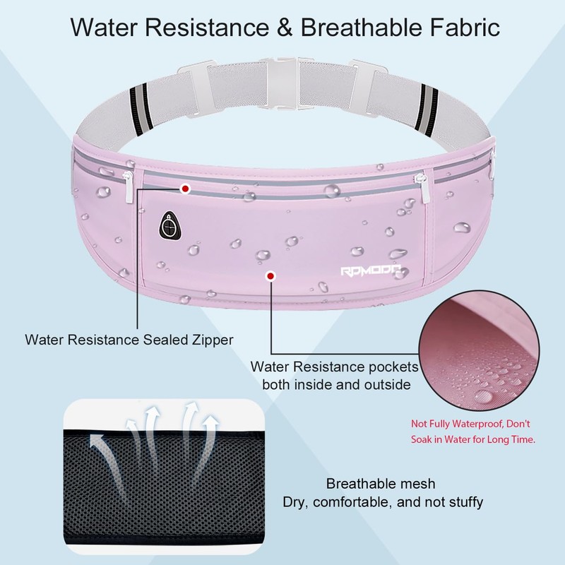 - 【Premium Material & Water Resistant】The running belt is make of Nylon and Spandex, which is soft, breathable and skin-friendly. The upgraded running phone holder add water resistant coating to the front and back fabrics of the pockets, and with the sealed water resistant zipper, its water resistance performance is more outstanding. water resistance fanny pack can protect your valuables from sweat, rain, and dirt (Not 100% waterproof, please don't expose in rain for long time).