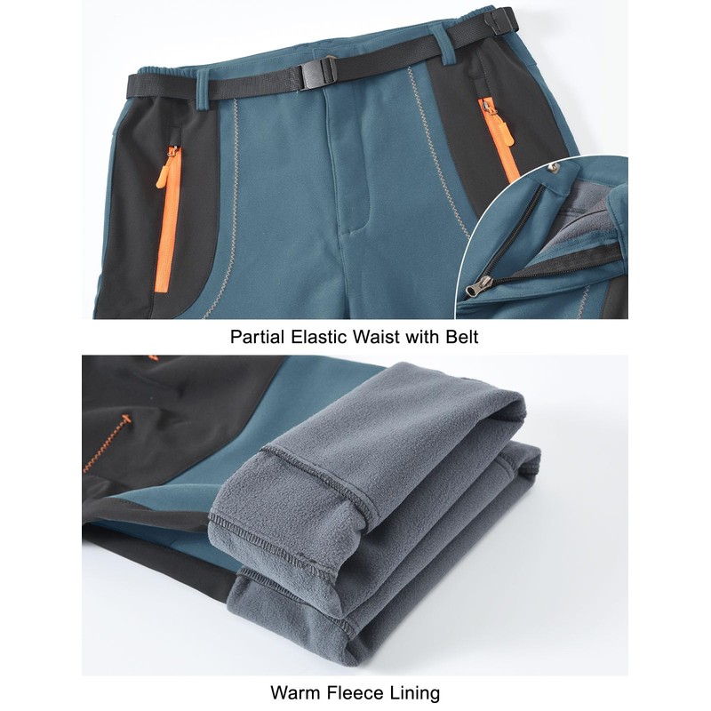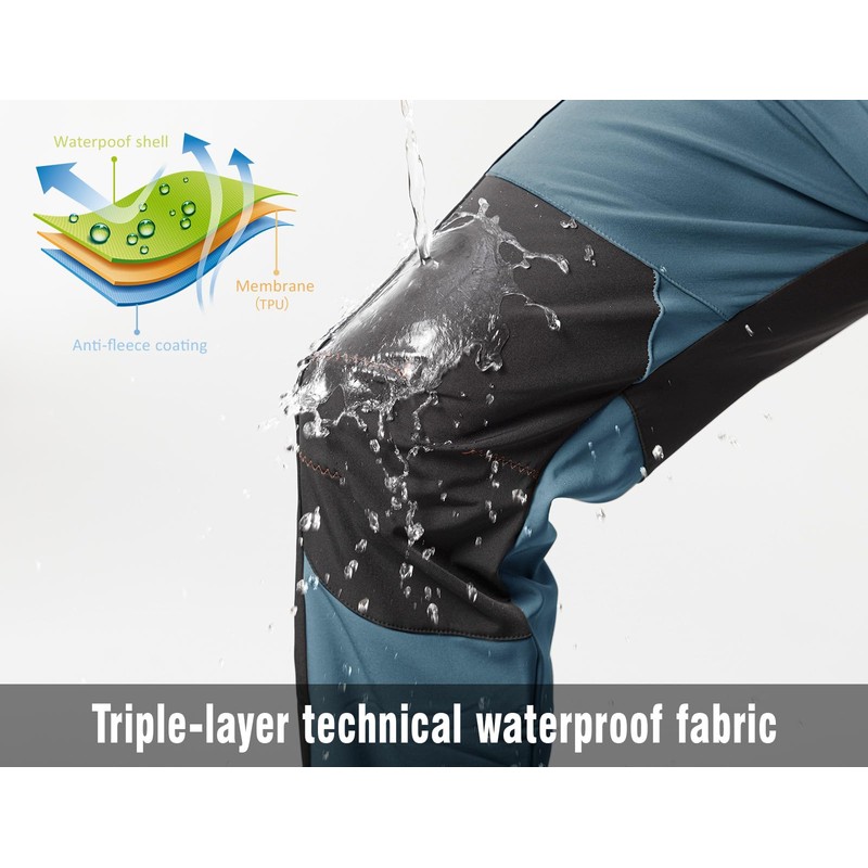 Rdruko - Pantalones de senderismo de invierno para hombre, impermeables, aislados, con forro polar y forro polar (azul vaquero, talla M)