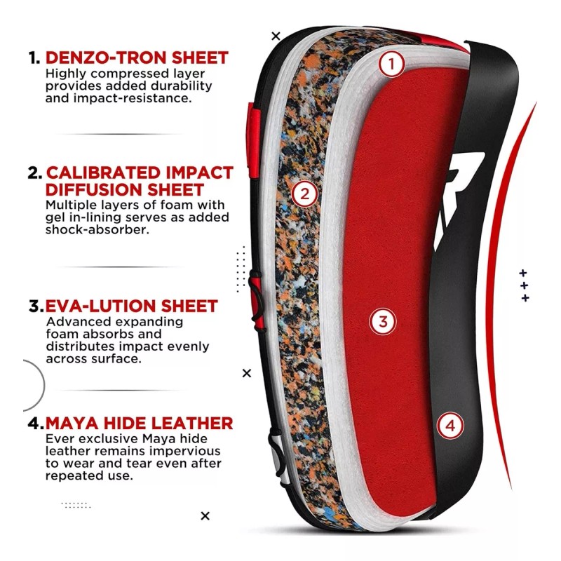 RDX Muay Thai - Almohadilla para entrenamiento, escudo curvo de kickboxing, kickboxing, coaching kickboxing, artes marciales, karate, taekwondo, punching, pies, rodilla y codo (solo almohadilla)