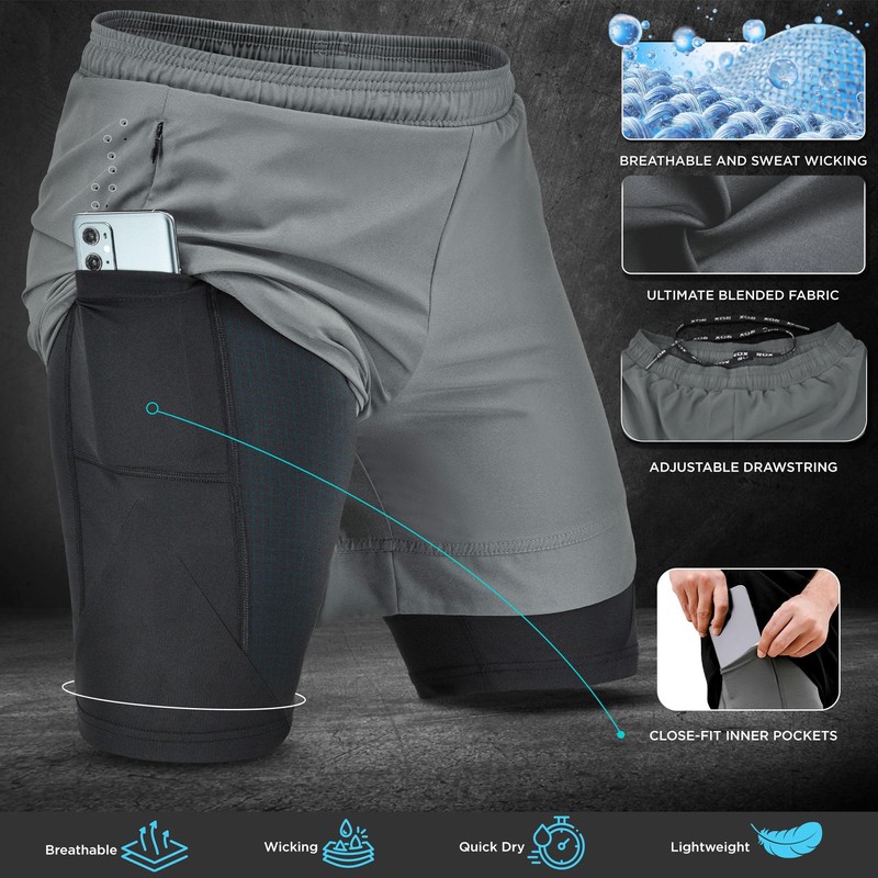 - INNOVATIVE 2-IN-1 HYBRID SHORTS –Discover the revolutionary 2-in-1 Hybrid Shorts from RDX, a breakthrough for athletes who demand flexibility. These innovative training shorts combine the advantages of compression apparel and classic running shorts, suitable for various exercises. The compression inner layer provides support for extended runs or rigorous gym workouts, and the outer layer delivers a comfortable fit that blends style and comfort seamlessly.