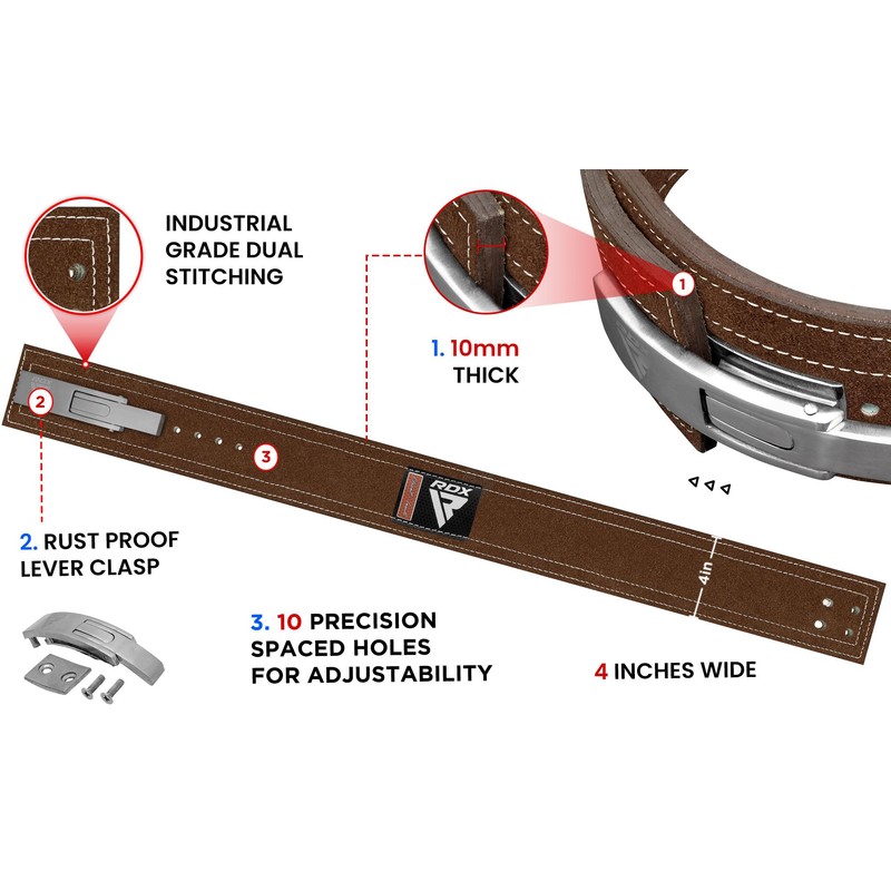 - STRONG LEVER CLASP CLOSURE We got it all covered. No matter what level of compression you need, the durable steel lever buckle can be adjusted on any of the 10 precision-drilled holes for optimal lumbar support while using the lever buckle belt. This ensures a sturdy, balanced, and ideal support while lifting heavy weights and keeps you focused in the fitness game.