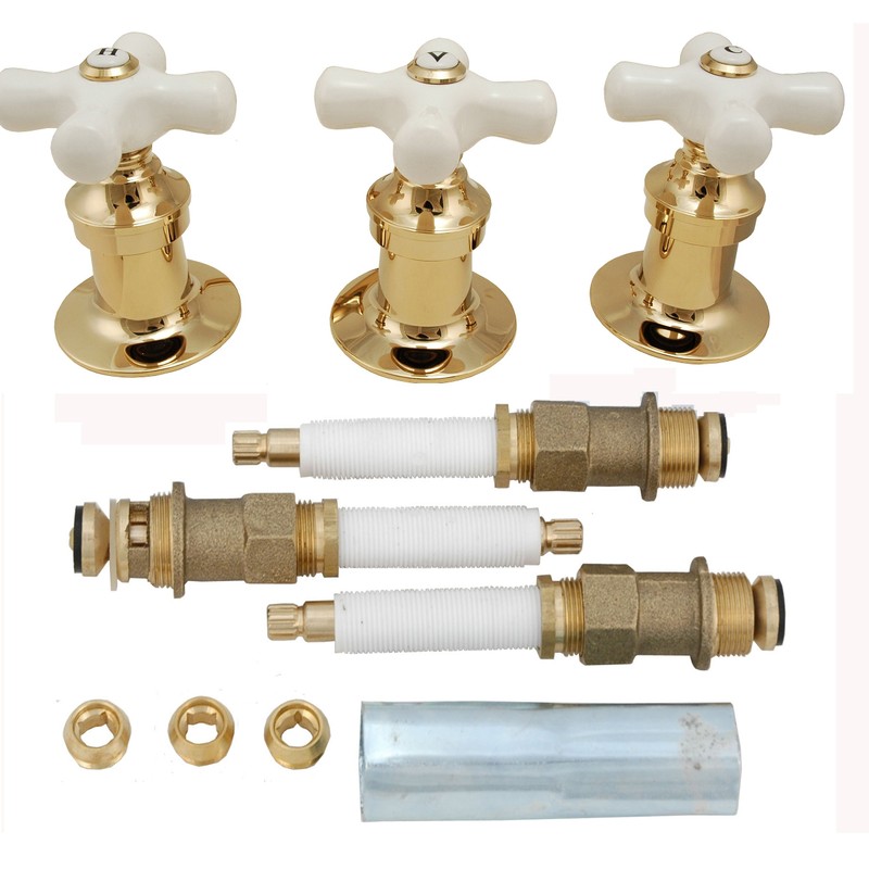 Re-Modeling Kit, Fit Price Pfister Shower set, Kit included 3 Porcelain Cross Handles, 3 Flanges, 2 Hot/Cold and 1 Diverter Shower Stems, 3 Seats, 3 plastic nipples and one Socket Wrench. Please check more of our products at www.faucet888.amazonwebstore.com