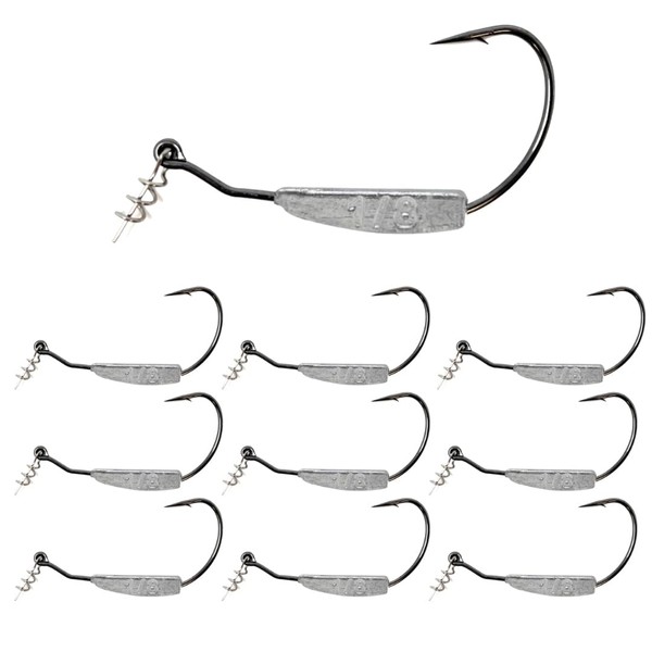 - SIZE STAMPED: The size is stamped in ounces on all weights and our weighted hooks for bass fishing improves the swimbait's movement, providing a realistic and enticing swimming action that attracts predatory fish