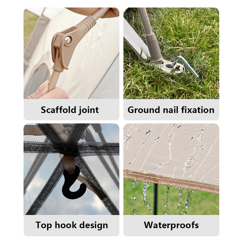 - [Great Ventilation]: 4 mesh windows and 2 D-shape mesh doors with rollable curtains enhance airflow and open view. This effective design keeps insects out and creates a comfortable, airy environment, and wide view.