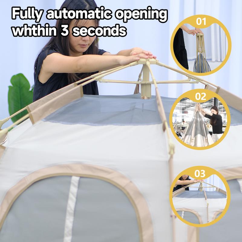 Reactive Outdoor 2-4 Person Camping Tent Waterproof 60 Seconds Easy Quick Setup Hexagonal Design for Family Camping Accessories