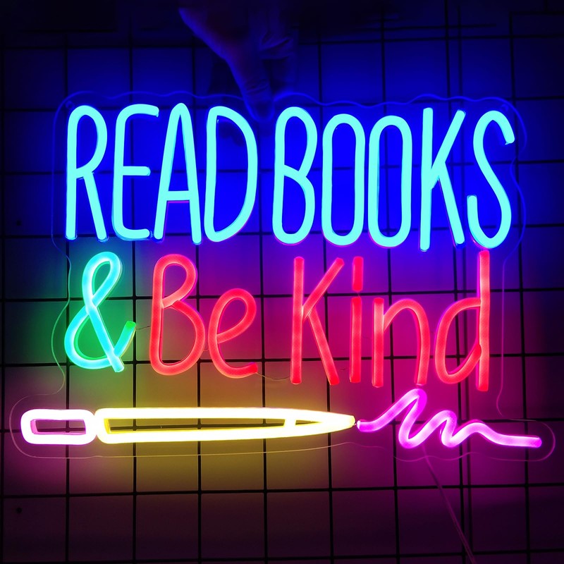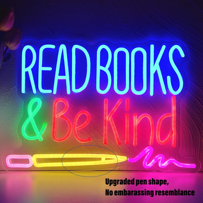 - Perfect Classroom Light: A perfect addition for the library area in classroom. Improved pencil shape avoids embarassing resemblance. Waved strokes is distinctive. Create positive vibes with our read books and be kind neon signs