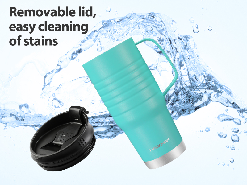 UPGRADED STAINLESS STEEL HANDLE: The handle is upgraded to stainless steel, which will not come off; And the handle design is ergonomic, large or small hands are comfortable to hold the coffee travel mug; Anti-scalding handle, more reassurance to use ; In the cold winter, it can bring you steaming warmth, and in the hot summer, it can also bring you a refreshing and cold feeling.